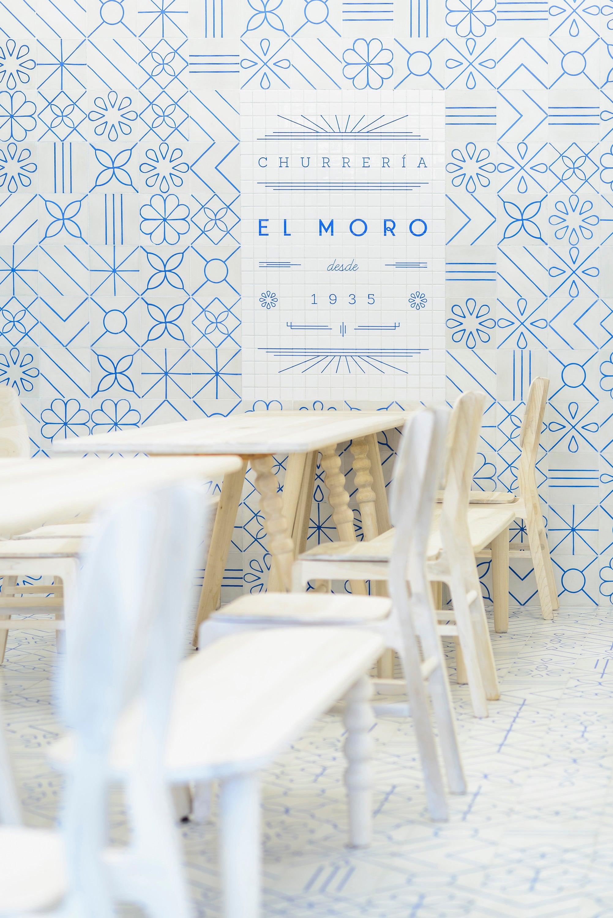 Diseñar para El Moro, una institución emblemática en la Ciudad de México desde 1935, fue un tributo a la tradición. Este icónico establecimiento, famoso por sus churros y chocolate, es parte integral de la vida cotidiana de los capitalinos.